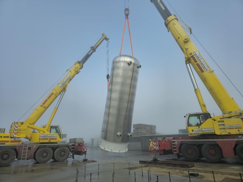 Our 60T and 220T Liebherr cranes standing a Co2 tank this week for a 'Green Energy' project